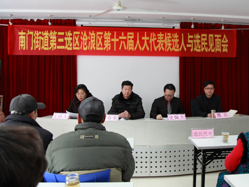 ?2012年2月18日,公司董事長(zhǎng)史佩杰作為滄浪區(qū)第十六屆人大代表候選人參加了區(qū)南門街道第三選區(qū)選民見面會(huì),并回答了選民提出的問題。